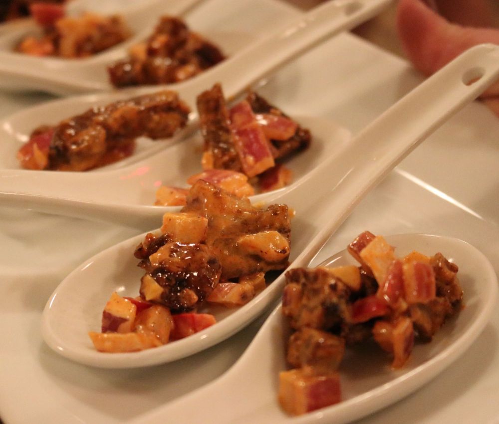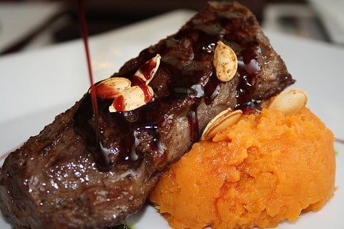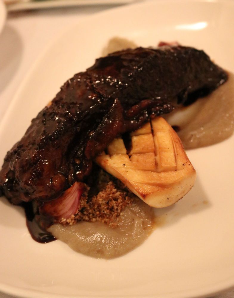 Carrot puree, pearl onions, fingerling potatoes, asparagus